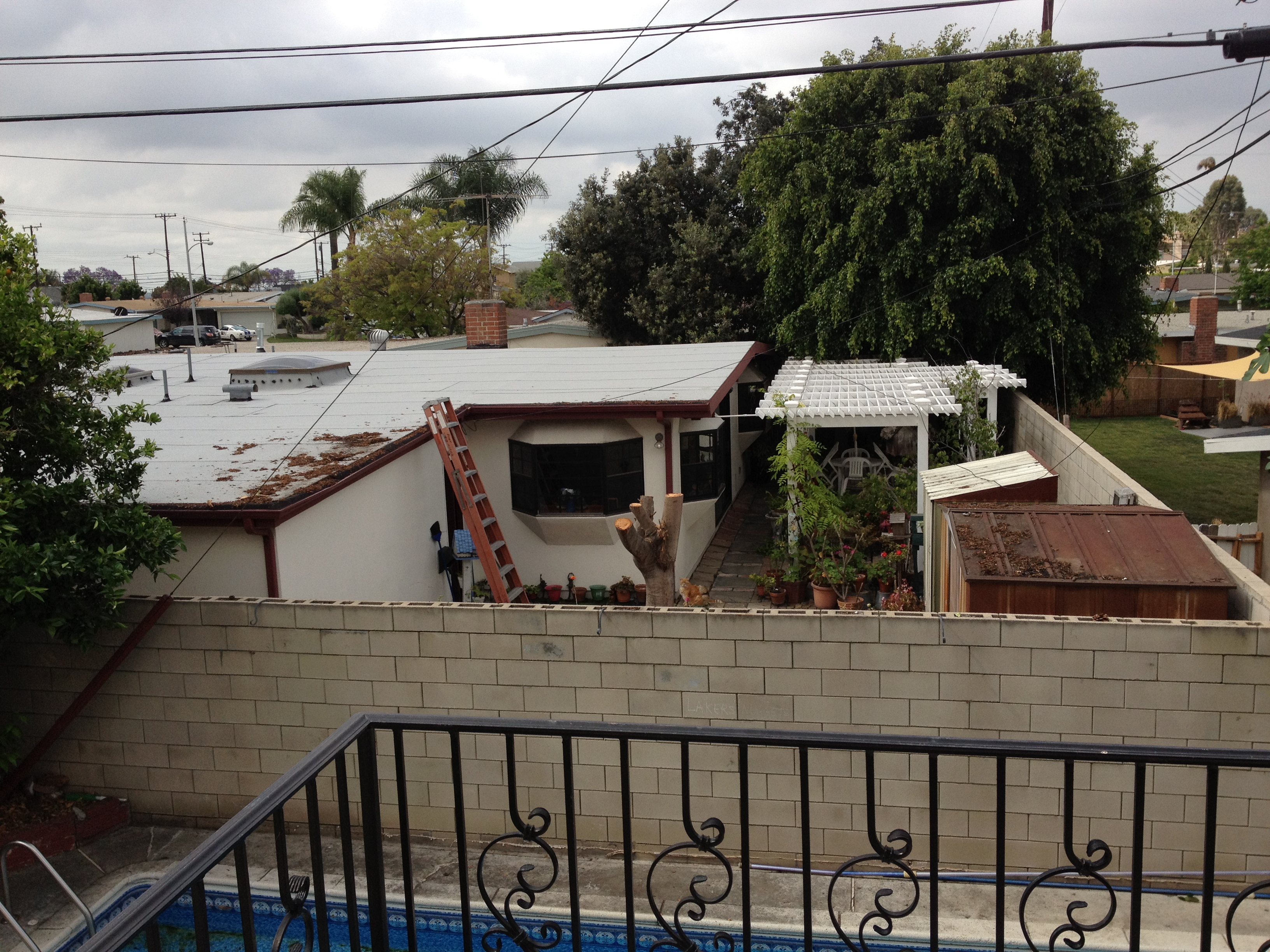Copacul ravnitor al vecinei mele a fost tuns iar la zero! Frunzele lui nu-mi vor mai invada curtea si piscina. (aici) Vom vedea ce va reusi sa faca acum.