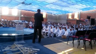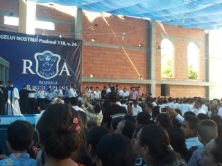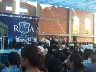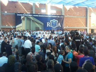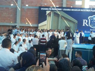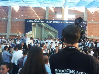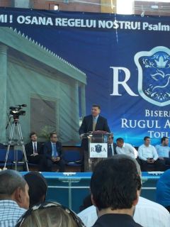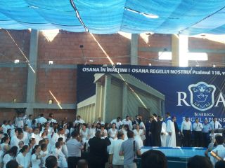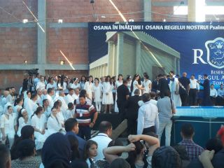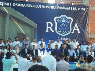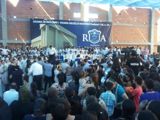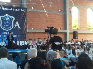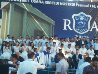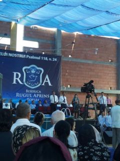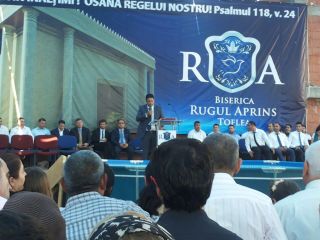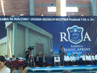 Duminică 30 august a fost incendiară. Și în biserică, și afară. Înainte de ora 10 peste o mie de persoane trecuseră pragul bisericii încă în construcție. O oră mai târziu mai veniseră încă o mie. Vasile Oprea, Isaura și Piți au început închinarea. În fața scenei special amenajate între 100-120 de credincioși stau în costume albe, pregătiți de mărturia pentru botez. Între cele două grupuri o piscină uriașă. 20 de frați fac ordine. Pastorul Oniță cheamă poporul la rugăciune. Apoi cântare, lacrimi, mâini și inimi înălțăte spre Dumnezeu. Continuă cu predica Gheorghe Cazacu din Iași. Un misionar ce aleargă pe 5 continente. A urmat la predică Nicolae Geantă. “În cer se ajunge uzi”, a fost mesajul. Lacrimi, rugăciuni, angajamente. Apoi a predicat Vasilică Croitor, pastorul Comunității Regionale Constanța. “Dumnezeu se apropie de noi și nu avem ochi să-L vedem”. Chemare. Un grup de tofleni ies să-și închine viața Domnului. Lacrimi, rugăciuni, binecuvântări. Predații se întorc în sală. Apoi cântare. Încep să crească aripi. Pe scenă vin alți doi, un el și-o ea. Apoi un toflean plecat în Anglia. În timpul cântări mai