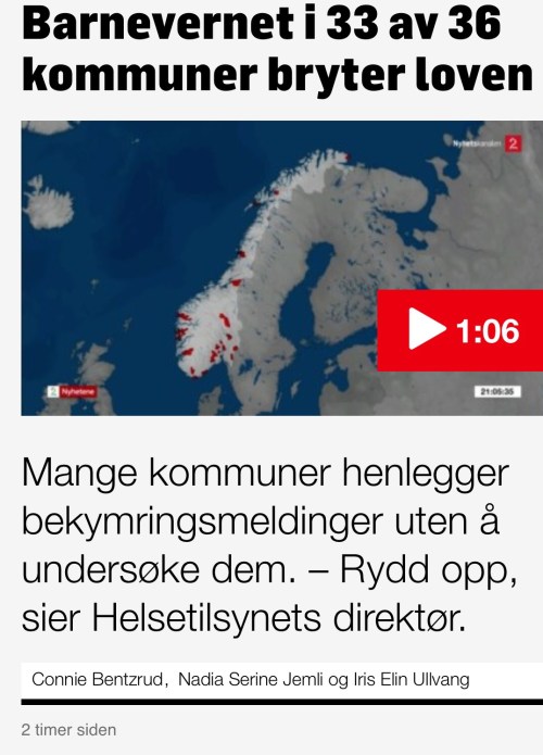 Dar, domnilor de la media, ce convenient să scoateți această gogoașă acum, când cică Barnevernetu’ nu că ar fi un monstru cu coarne, copite și coadă, dar este prea timid, auzi, prea tolerant! Rușine!