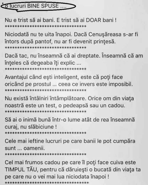 Opt lucruri bine spuse By barzilaiendan on May 9, 2019 • ( 0 ) Share this: Click to share on X (Opens in new window) X Click to share on Facebook (Opens in new window) Facebook More Click to email a link to a friend (Opens in new window) Email Click to print (Opens in new window) Print Like Loading...‹ A Great Awakening? Government Leaders Go to Their Knees in Prayer in U.S. Capitol Building [Video]Iohannis, la summitul PPE de la Sibiu: Am adus Europa acasă, aici în România | Romania Libera ›Categories: Maxime si cugetari Related Articles Înțelepciunea fratelui Taloș Vasile Ce șanse ai? Bine de ținut minte în controverse Ce te afectează: părerile oamenilor sau privirea lui Dumnezeu?