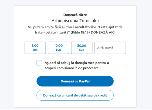 Source: Arhiepiscopia Tomisului anunţă că pot fi trimise pomelnice prin PayPal, odată cu donaţiile