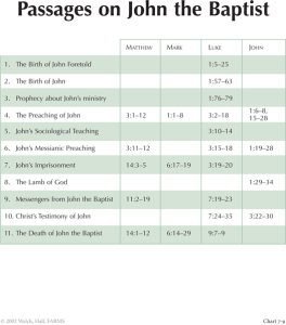 Two other charts are helpful this week: Passages on John the Baptist