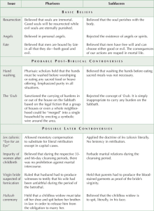 A second chart looks at the legal views of Pharisees and Sadducees: