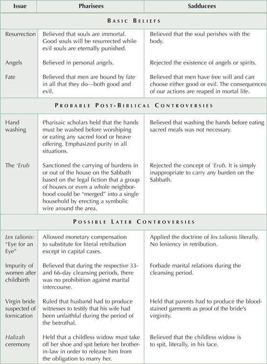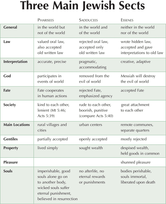 Chart 3-3 is drawn from Gregory R. Knight, “The Pharisees and the Sadducees: Their Respective Outlooks on Jewish Law,” BYU Law Review (1993): 925-48.