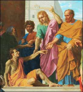 Așezat la debutul cărții Faptele Apostolilor, textul despre vindecarea slăbănogului de la Poarta Frumoasă este mai mult decât o narațiune, este o metaforă. Imaginea este a unor apostoli care merg la Templu să-L ofere pe Domnul Isus nu numai acestui slăbănog, ci tuturor evreilor. Vindecarea acestui neam nu se poate face cu bani, ci doar prin Isus Christos. Ea este însă condiționată de un act conștient de voință. Ei trebuie să dorească și să primească vindecarea prin oferta apostolică (Fapte 3:1-11).