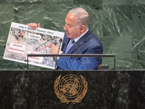 1. La tribuna ONU, Netaniahu a scos înaintea tuturor o hartă și a desenat ceva cu o carioca roșie, vestind debutul unei epoci noi de pace și colaborare cu țările arabe din jur.