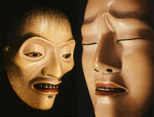 Într-un teatru japonez Kabuki, preotul și levitul ar purta astfel de măști: